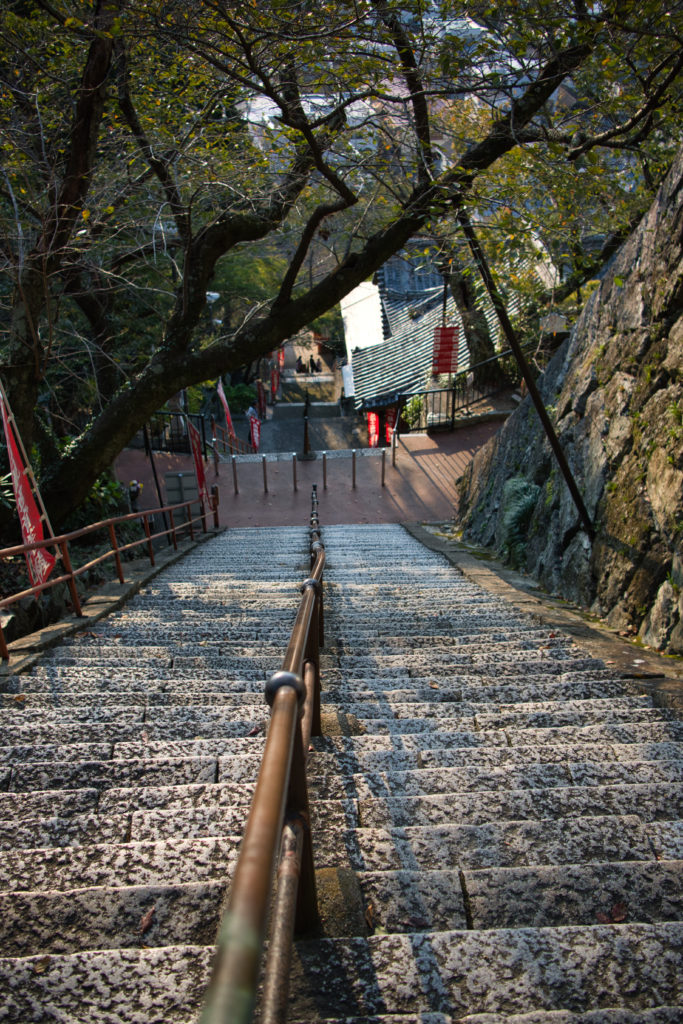 足腰に問題がなければ少し息が切れる程度で登ることができました。名物の石段ですので、よければぜひチャレンジしてみてはいかがでしょうか。